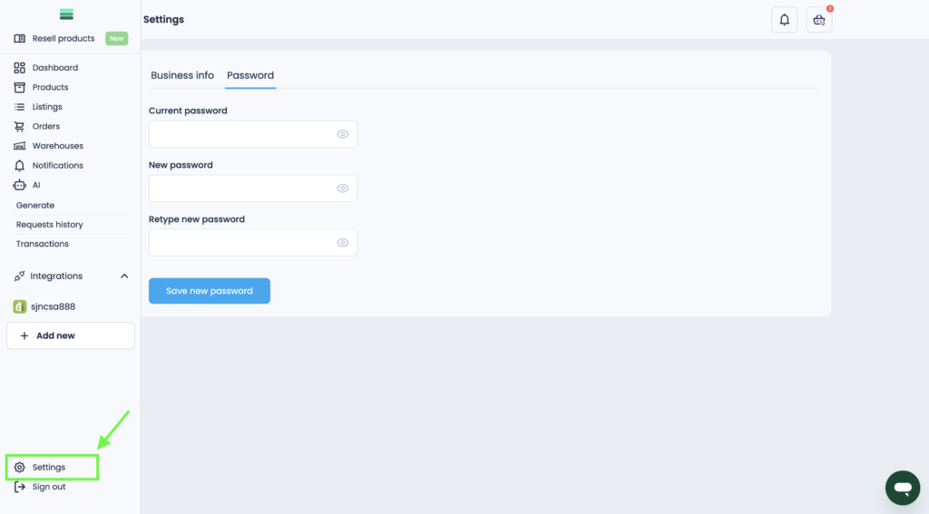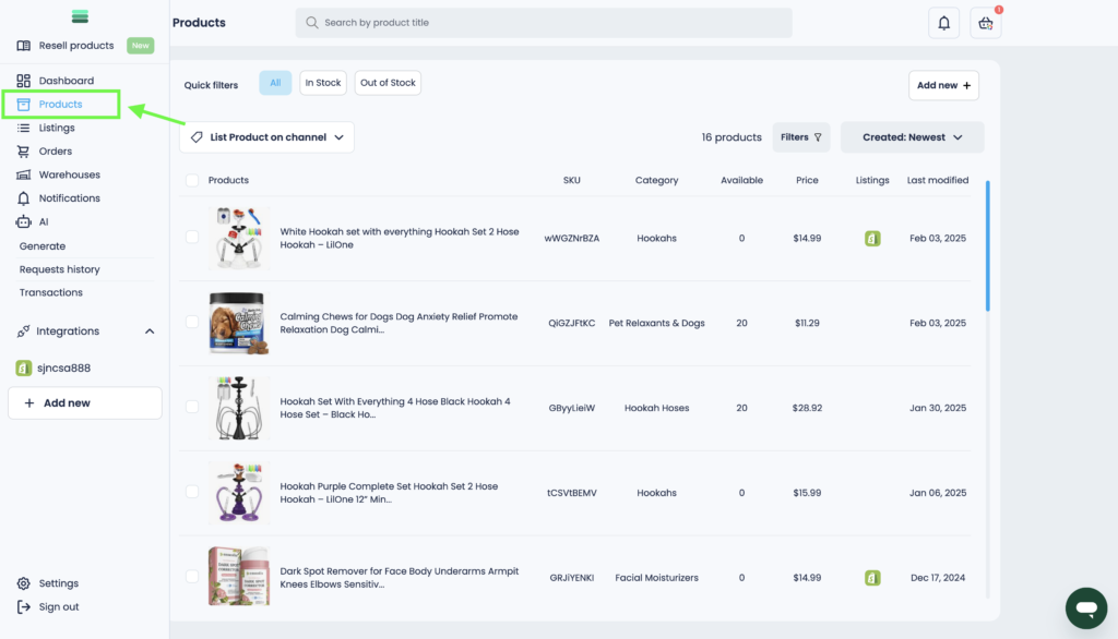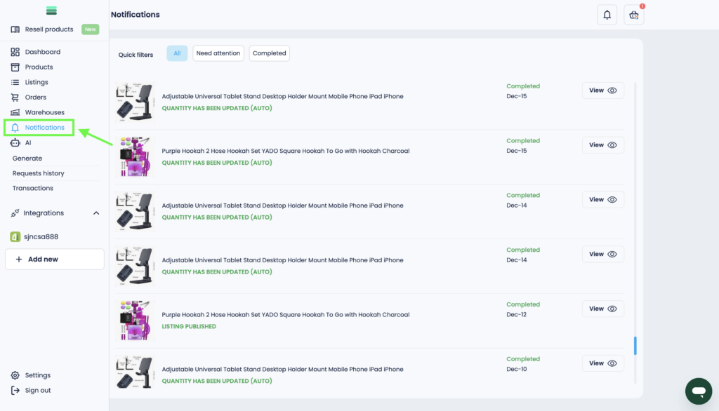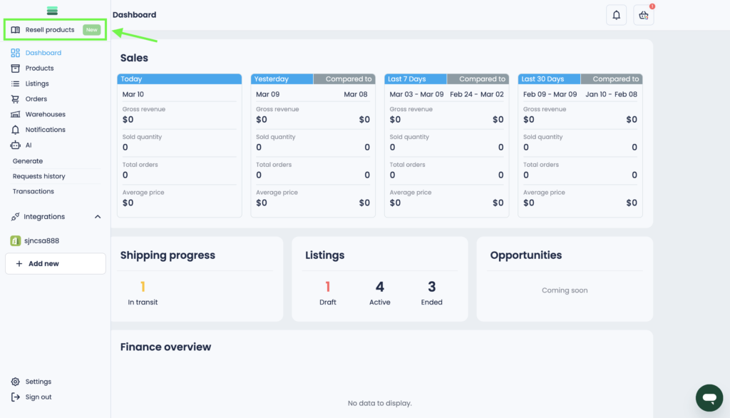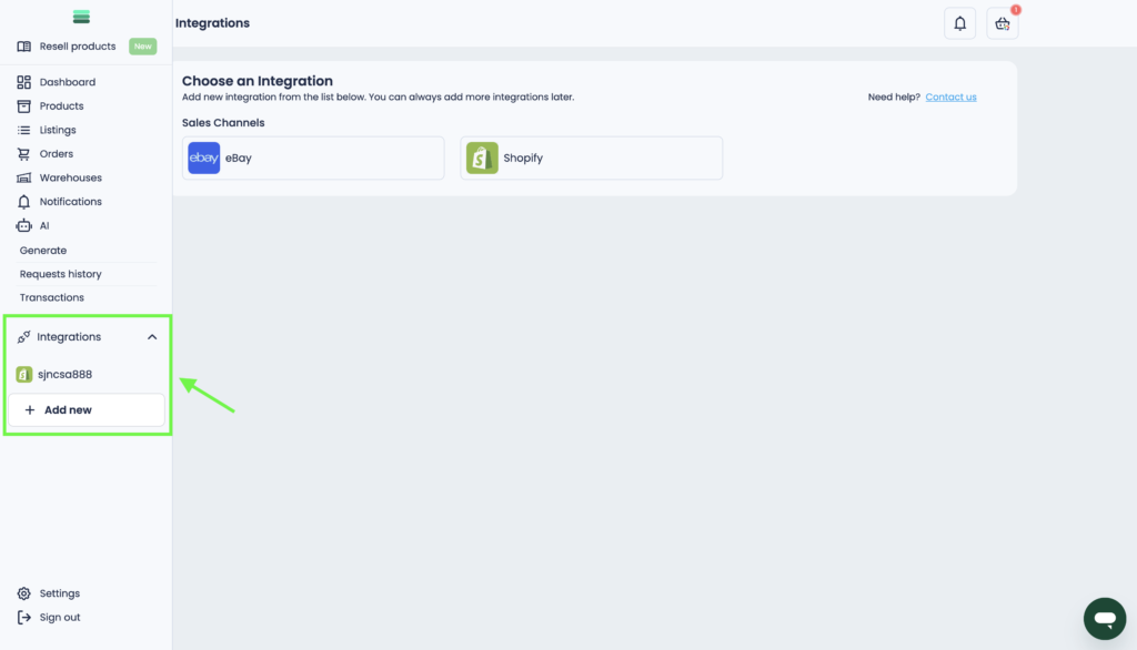9. The Integrations section allows you to connect and manage third-party e-commerce platforms. You can integrate your eBay and Shopify stores, syncing inventory, orders, and listings for seamless selling across multiple platforms.
