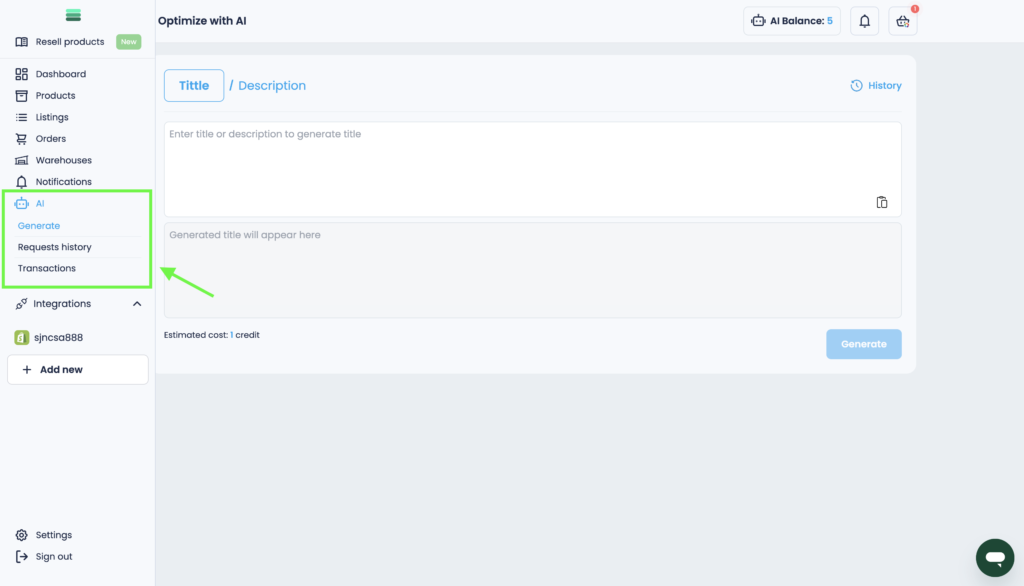 8. In the AI section, you can optimize listing titles and descriptions, generate highlights for your images, and improve the visibility of your products.