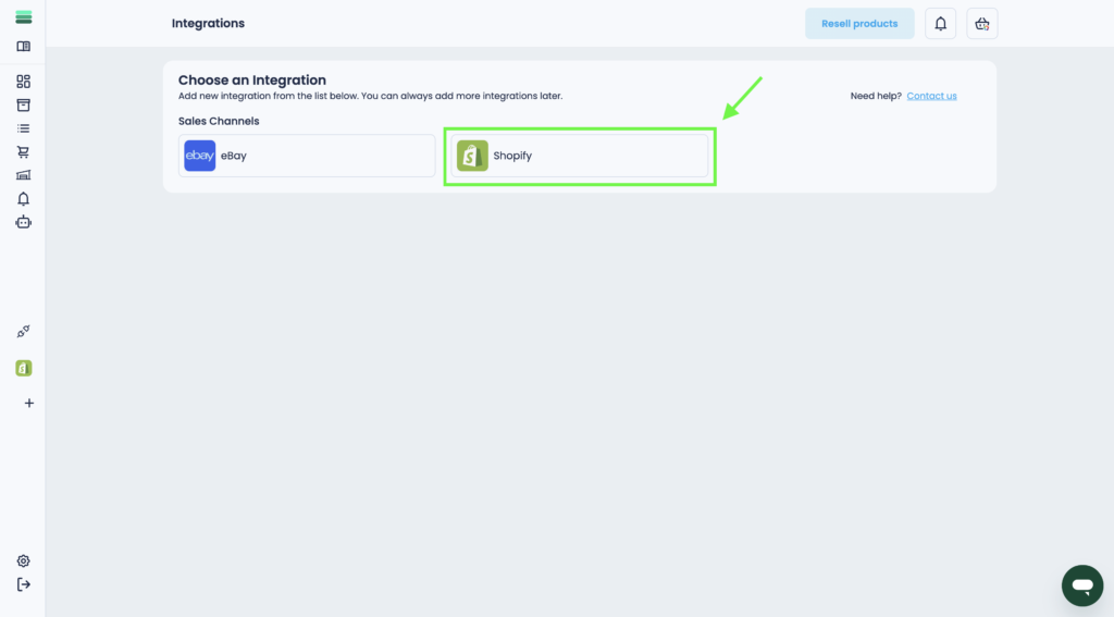 2. Choose Shopify from the proposed integrations.