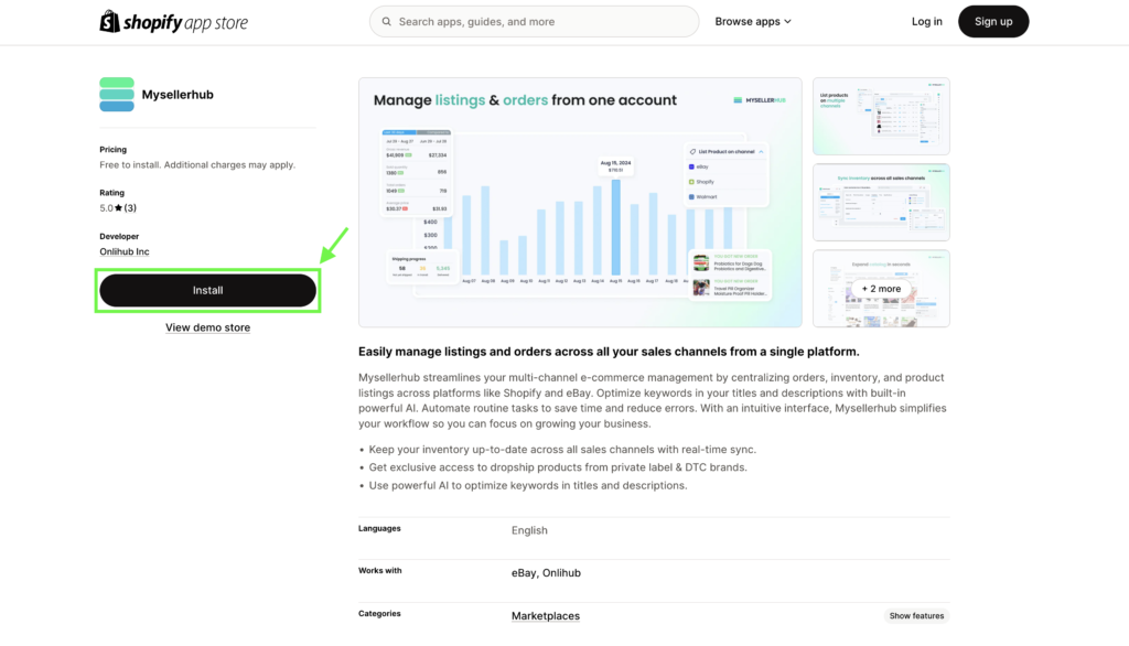 4. You will be redirected to the Shopify app store. Click Install and follow the on-screen instructions to complete the setup.