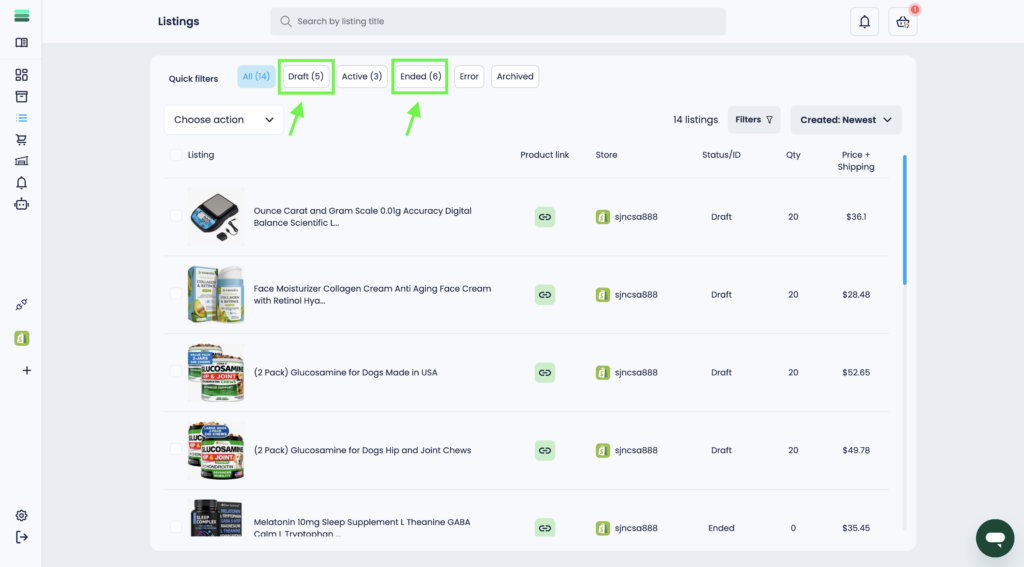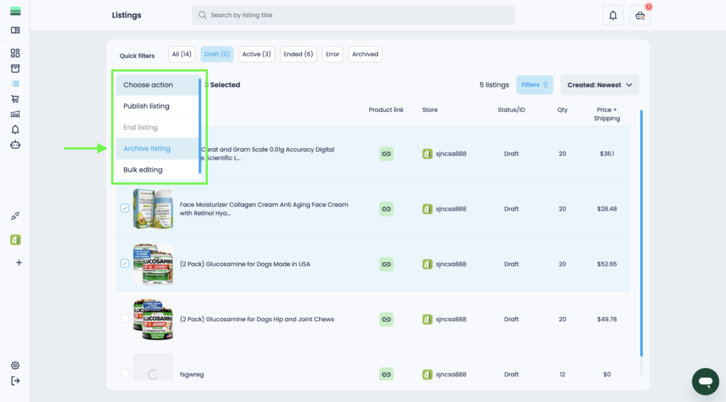 Important: You can archive only those listings that are in the Draft and Ended statuses.
