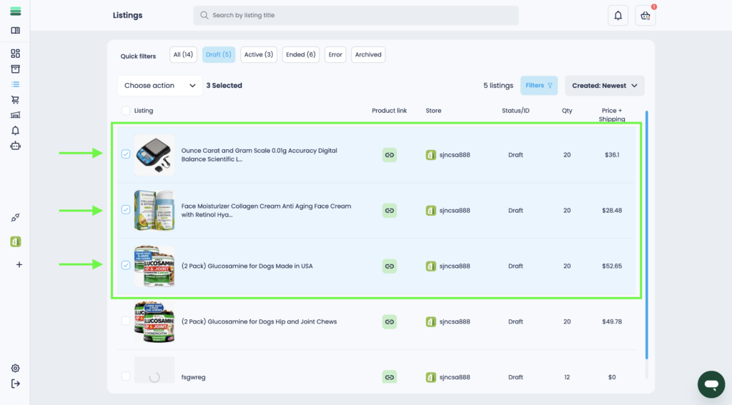 3. Select 1 or more listings you want to archive. To do this, use the checkboxes.