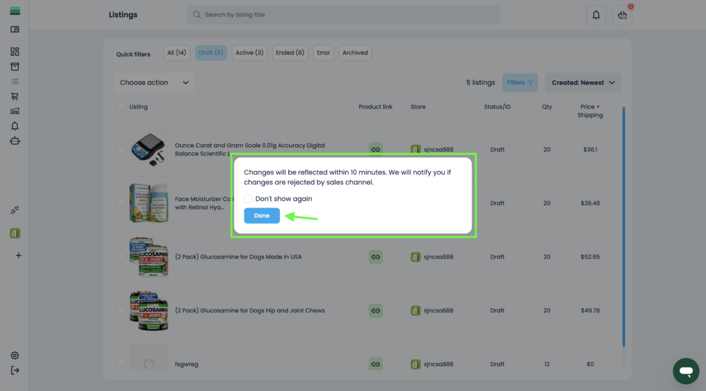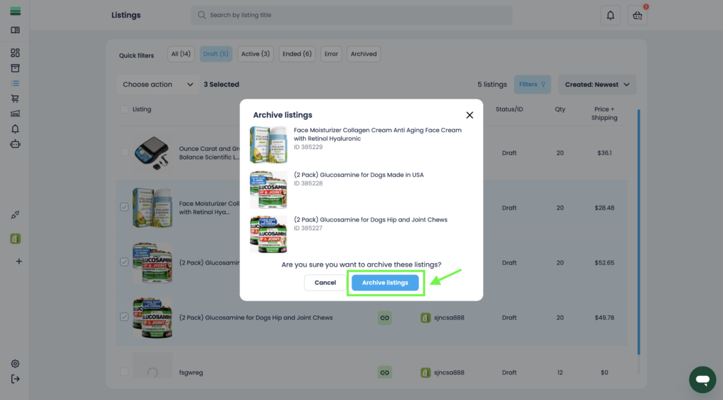 6. In a few minutes, the changes will be applied and the listings will be archived.
