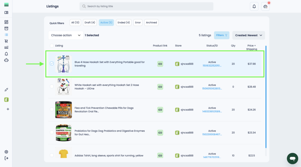 2. Find and select the listing you want to finish in the list. To do this, click on the checkbox next to the listing photo.