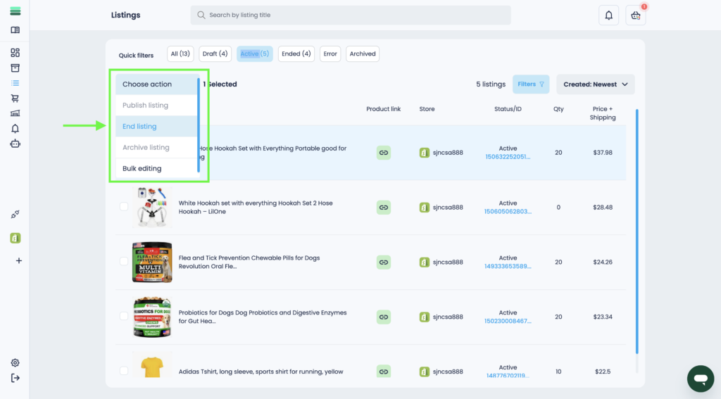 3. After that, click the Choose action drop-down list and select the End listing action.