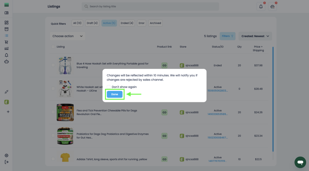 4. Your listing will be successfully ended in a few minutes.