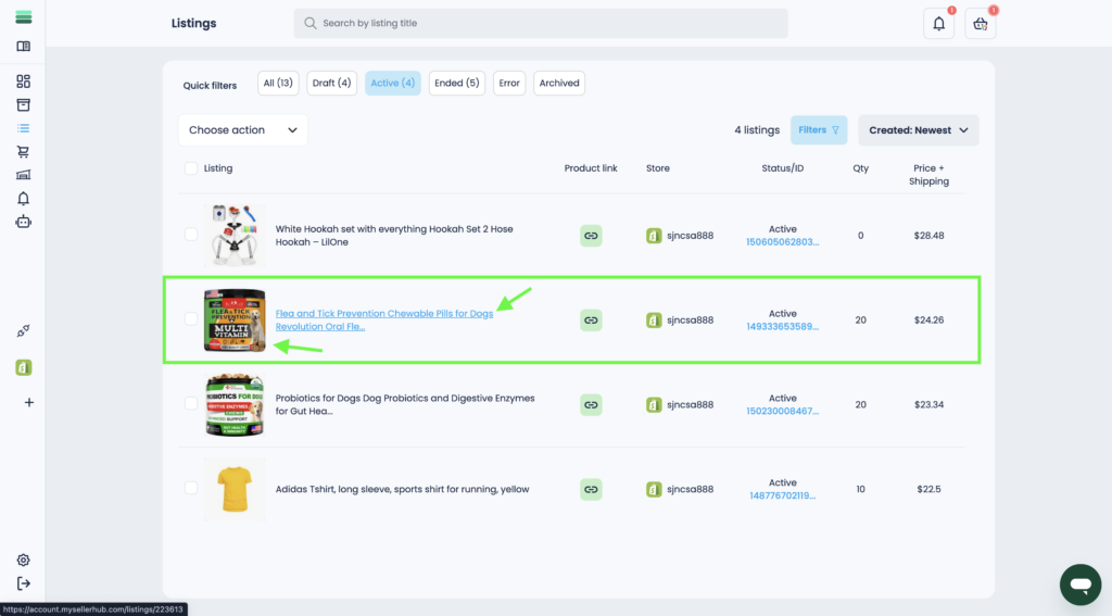 Important: Only active listings can be ended. For convenience, you can use the filter to see only active listings. To do this, click the Active button at the top of the section.