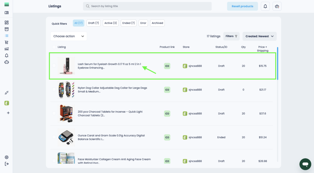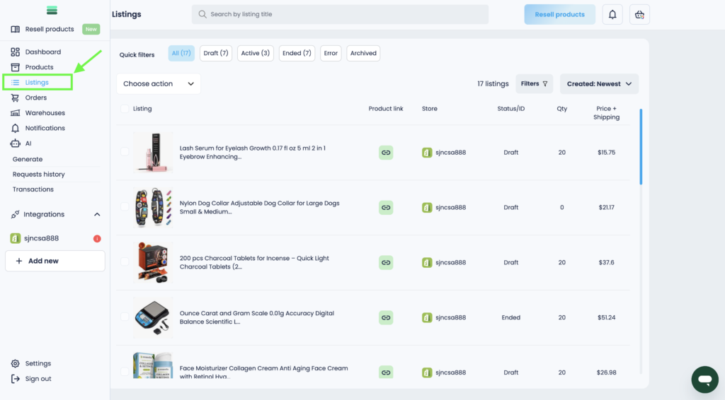 1. In the side menu, open the Listings section and go to it.