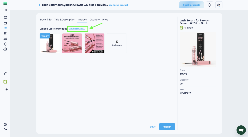 3. In the Images tab, click the Optimize with AI button.