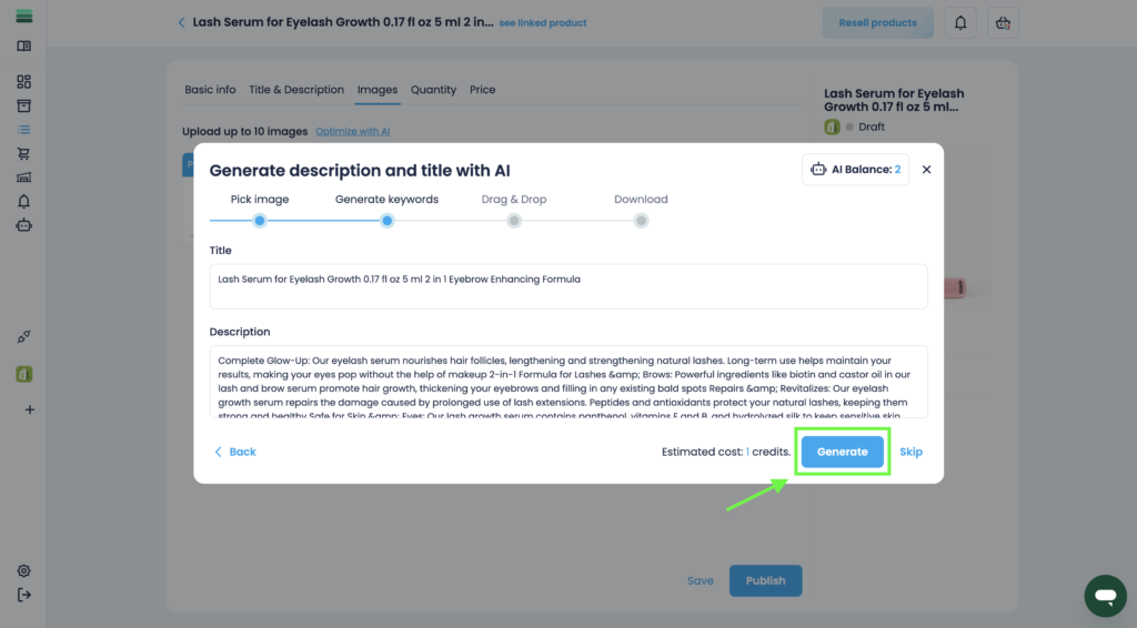 5. In step 2, generate a list of keywords from the title and description of the listing.