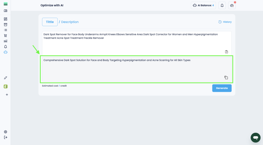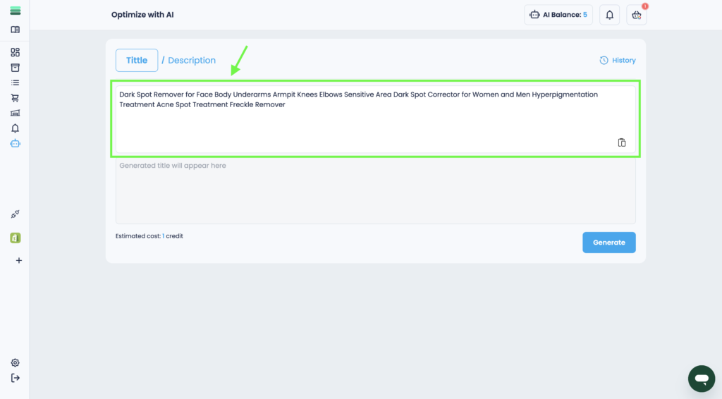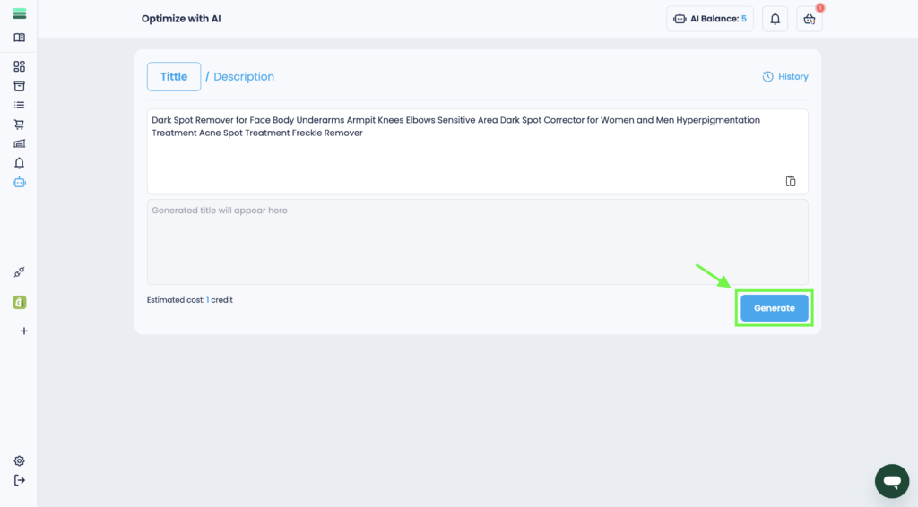 Tip: Pay attention that the price of generating a title is 1 credit.