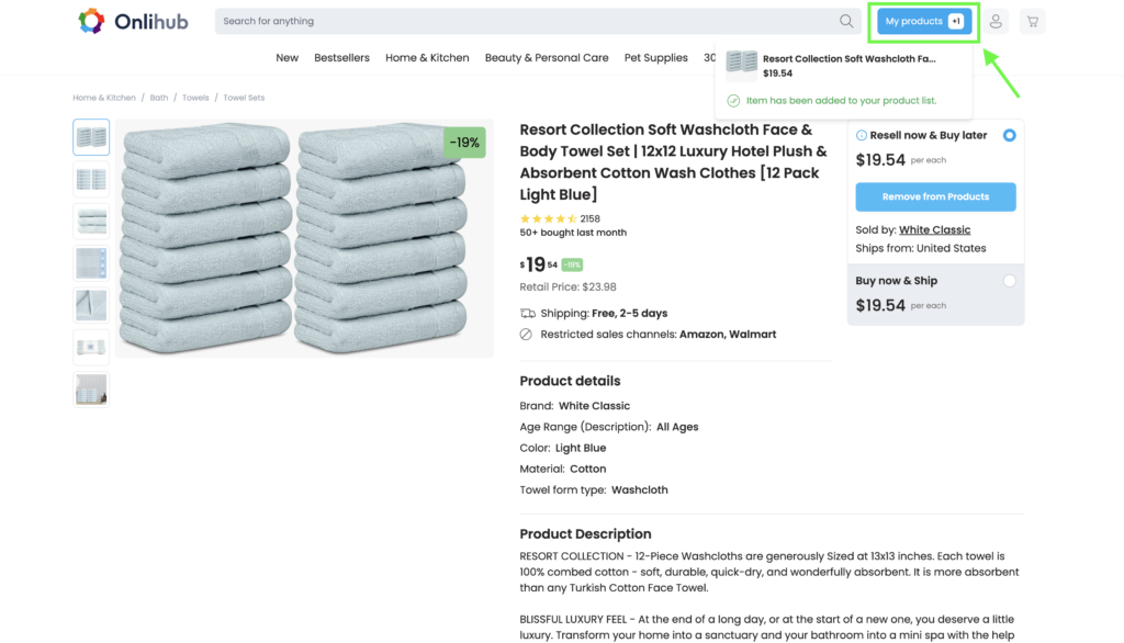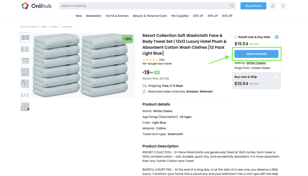 4. On the product page, you can view more detailed information about the product. After researching, click “Add to Products” to add the product to Mysellerhub.