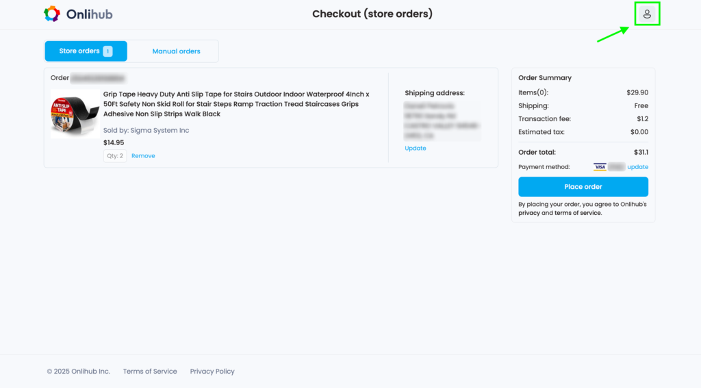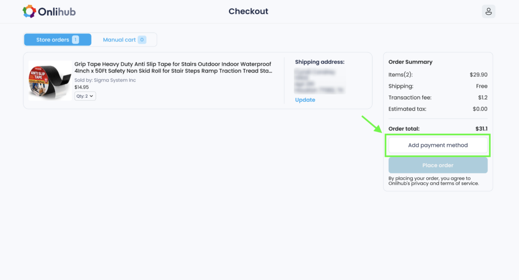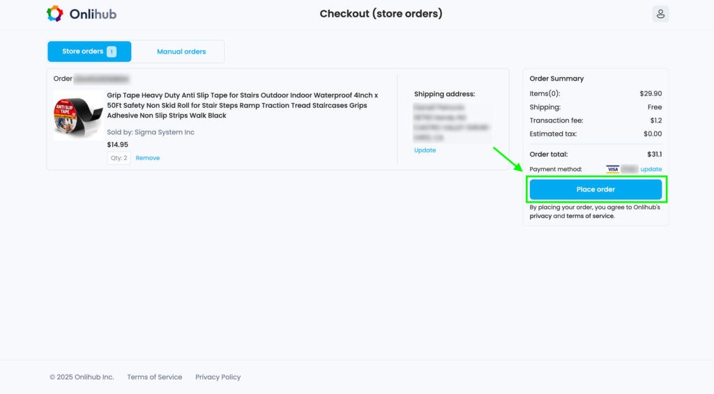 4. After the payment method is successfully added, you can buy products. To do this, click the Place order button
