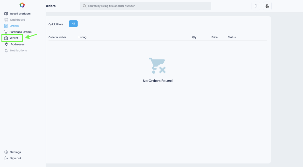 3. In your Onlihub account, open the side menu and go to the Wallet section.