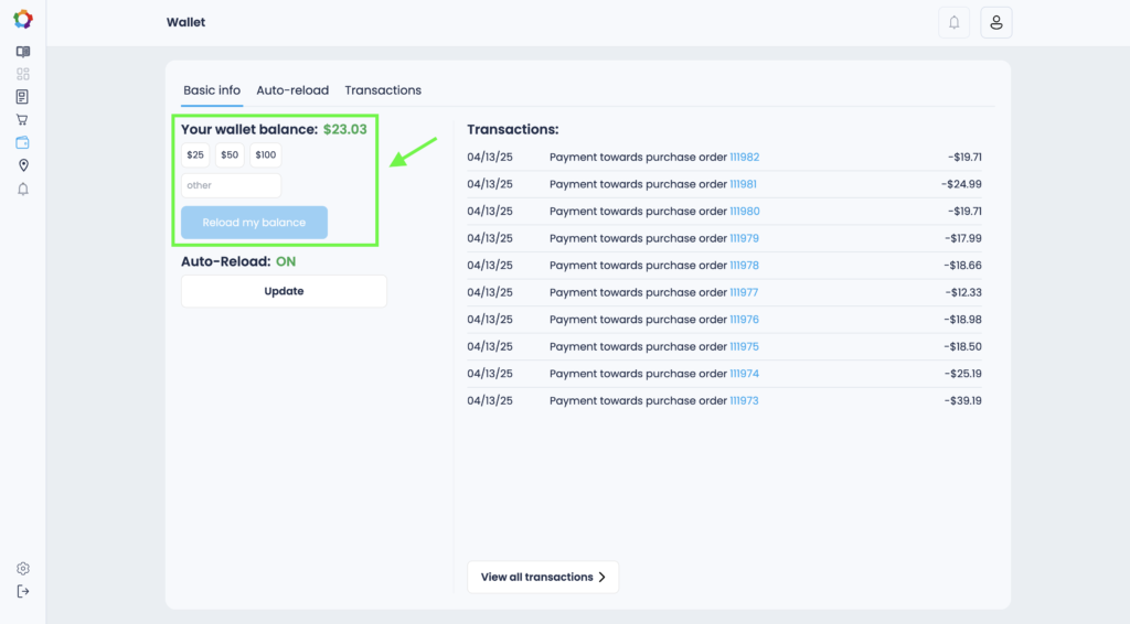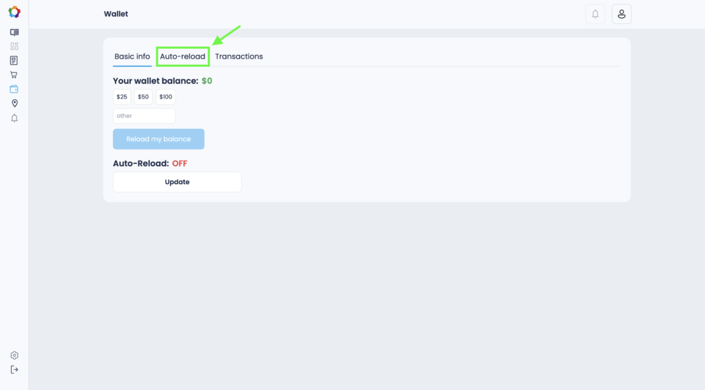 4. In the Wallet section, go to the Auto-reload tab.